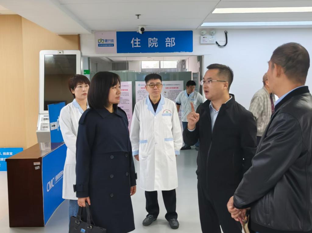 图为王汕珊同志(左二)深入西青区张家窝镇社区卫生服务中心走访调研