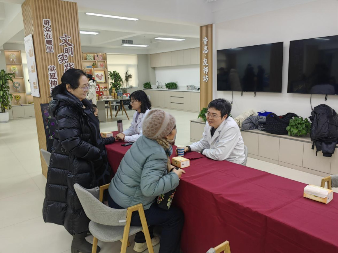 委员会委员郭颢龙,成员张旸、孟媛为社区居民提供义诊及健康咨询服务。他们耐心聆听、细致分析,就高血压、糖尿病等疾病给予专业建议,并向大家广泛普及常见病、多发病的防治知识及中医养生保健方法,真正做到了专家面对面、问诊零距离。