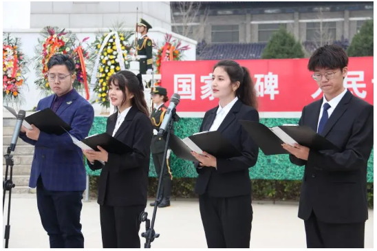 “人民英雄永垂不朽、革命精神万古长青”,活动现场,国旗护卫队护旗出列,为人民英雄纪念碑肃穆列队,敬献花篮,全体师生默哀一分钟,并列队瞻仰纪念碑,寄托哀思。师生代表以诗朗诵的形式宣讲中国共产党建党100年来无数英雄和革命志士坚定信仰、守护初心、勇往直前、铸就辉煌的历史脉络,引起了现场师生的强烈共鸣。随后,师生共同参观了纪念馆,党员同志站在党旗前庄严宣誓,重温入党誓词。庄严肃穆的仪式再次让同学们受到了革命精神的洗礼,深切的感受到无数革命烈士可歌可泣的英雄事迹再次涤荡了心灵,作为医学院校的学生,更要继承革命精神,传承革命薪火,敬畏生命、传承中医药学宝库,救死扶伤,永葆报国之志。