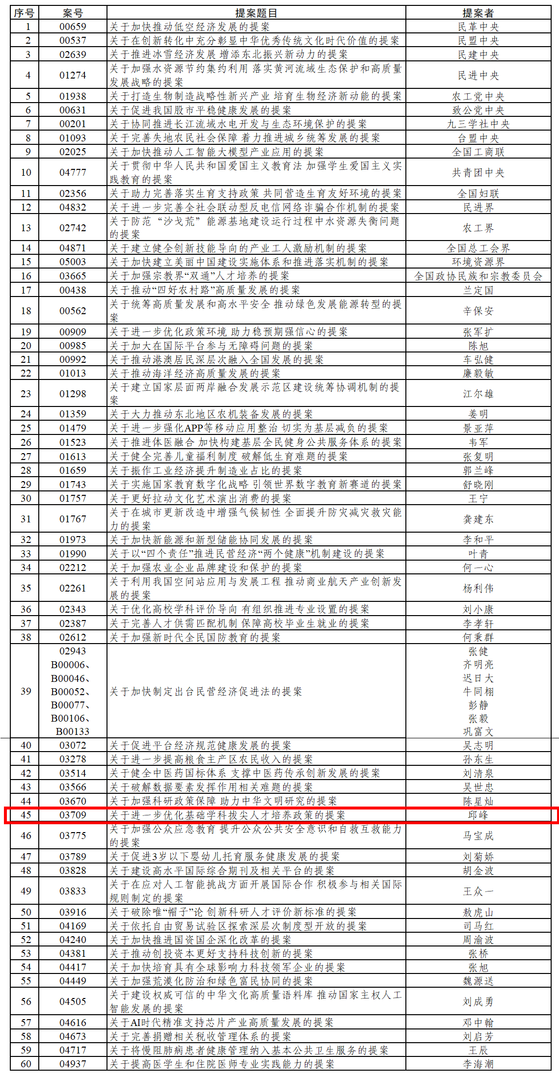 2025年1月,根据《中国人民政治协商会议全国委员会提案工作条例》和《政协全国委员会提案委员会关于年度好提案评选办法(试行)》,经有关提案承办单位推荐,提案委员会主任会议、全体会议研究审议,报全国政协领导同志批准,全国政协2024年度60件好提案名单予以公布。全国政协委员、民盟天津市委会副主委、我校副校长邱峰《关于进一步优化基础学科拔尖人才培养政策的提案》获得政协第十四届全国委员会优秀提案表彰。