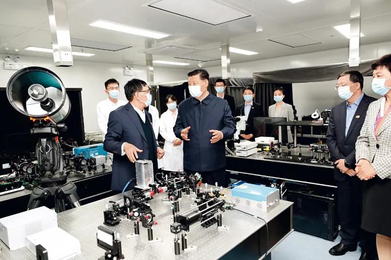2021年4月19日,在清华大学建校110周年校庆日即将来临之际,习近平来到清华大学考察。这是习近平在清华大学成像与智能技术实验室同师生们亲切交谈。