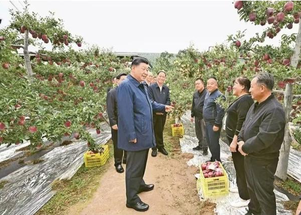 2024年9月10日至13日,中共中央总书记、国家主席、中央军委主席习近平在甘肃考察。这是11日上午,习近平在天水市麦积区南山花牛苹果基地考察时,走进果林了解相关种植、技术和管理情况。