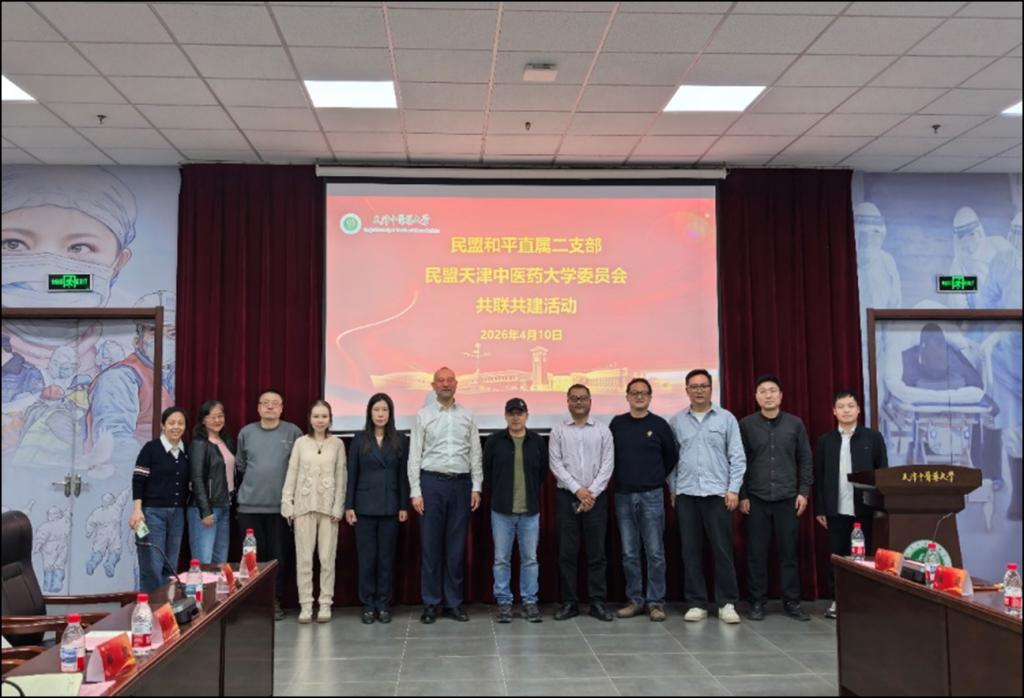 为进一步加强民盟基层组织建设,深化校地合作与资源共享,2026年4月10日下午,民盟天津中医药大学委员会与民盟和平区委员会直属二支部在天津中医药大学联合举办共联共建活动。校民盟委员会主委郑凯主持活动,民盟和平区委员会直属二支部、民建和平区委员会企管四支部、校民盟委员会成员12人参加活动。